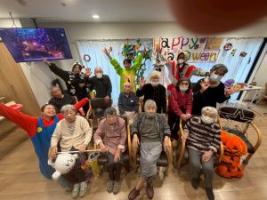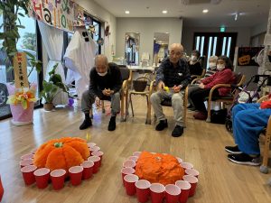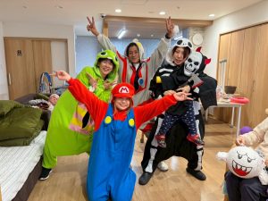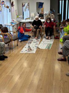利用者様にはあまりなじみがありませんが職員がキャラクターに扮 して踊りやゲームを行いました!